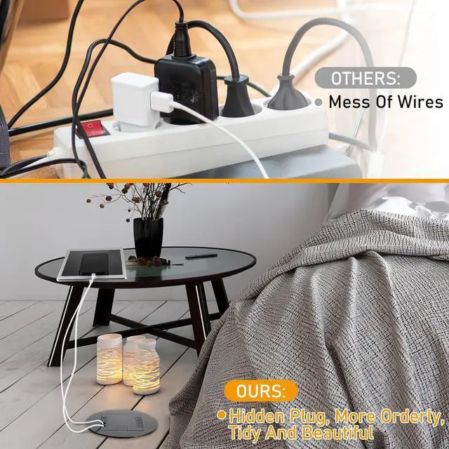 Space-saving Hidden Design: floor electrical outlet keeps plugs out of sight when not in use, maintaining a clean, trip-free floor surface; Simply flip open the cover when needed