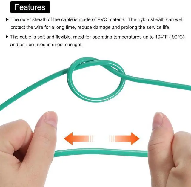 Material: Copper,PVC; Color:Green; Voltage: 600V; Wire Gauge: 10 AWG; Wire Dia: 4.3mm/0.17inch; Wire Length: 7.5m/24.6 Feet