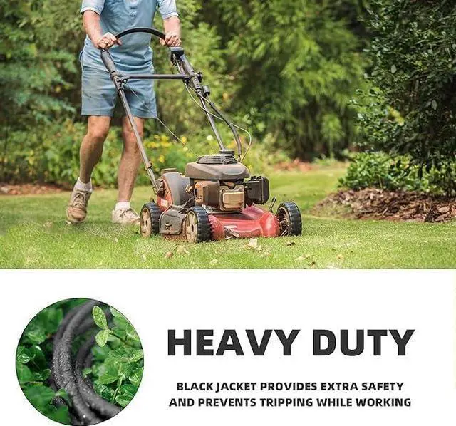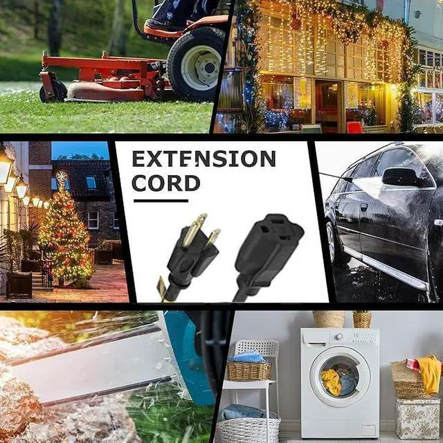 VERSATILE USAGE: This UL-certified SJTW extension cord excels in outdoor settings, catering to the power demands of diverse equipment like lawn mowers, chainsaws, Christmas lights, and more. It's equally adept indoors, powering appliances such as microwaves, heaters, and computers.