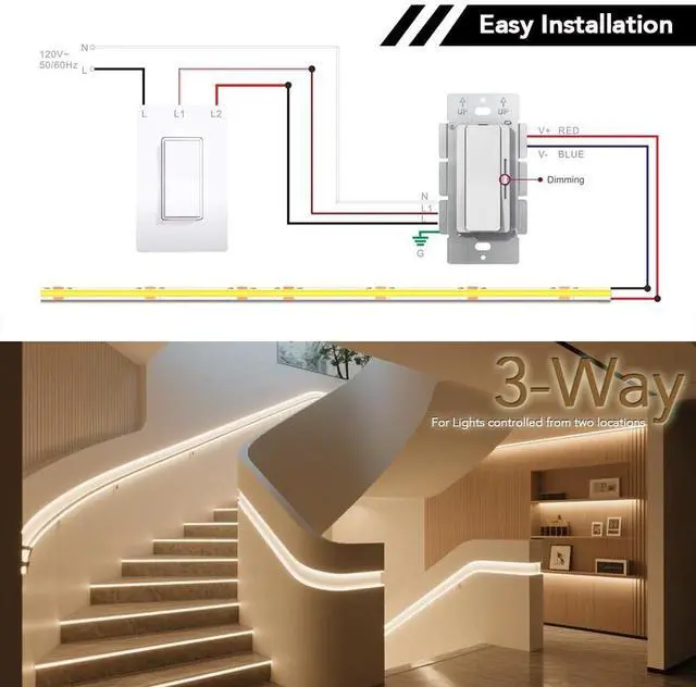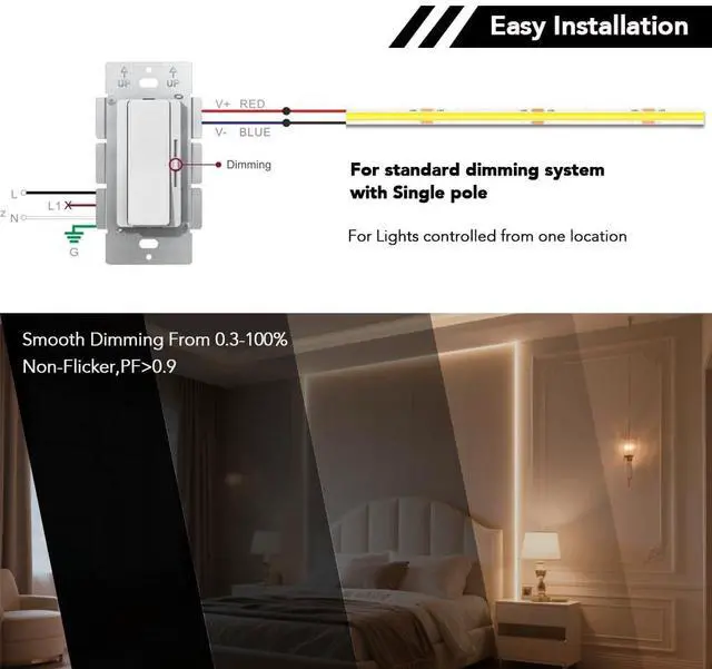 Versatile Design & 3-Way Switch Compatible: The product features a preset dimmer with an on/off switch for convenient operation. It is also compatible with 3-Way switches, offering more installation and usage flexibility.