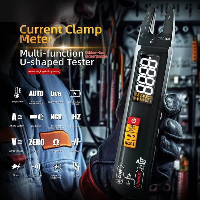 Multi-Function Digital Clamp Meter: accurately measures AC/DC voltages, resistance, zero-fire wire discrimination, capacitance, diode, frequency, duty cycle, continuity, and live wire testing. This clamp meter is a very useful tool for solving industrial and household electrical problems.