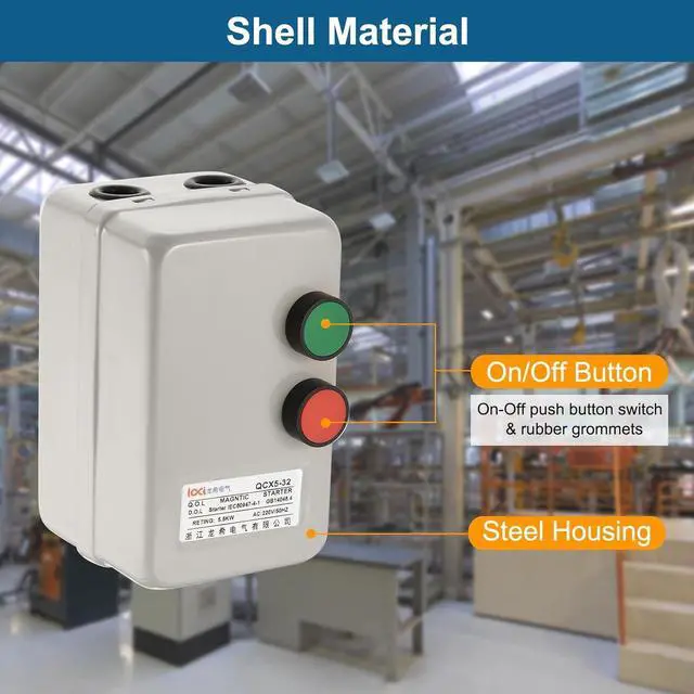The magnetic starter is made of steel housing and a durable contactor, air compressor magnetic start control with an On/Off button including a push button and On-Off switch rubber grommets. Great powerful, built-in overload protection, and protection, intelligent protection, stable performance, and 24-hour motor protection.