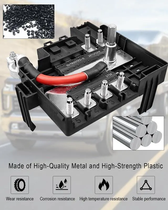 High-Quality Materials: Battery distribution engine compartment fuse block is made of high-quality metal and high-strength plastic, which is sturdy and durable, effectively preventing wear and corrosion, ensuring long-term and stable operation of the battery distribution fuse box, and perfectly replacing old cables