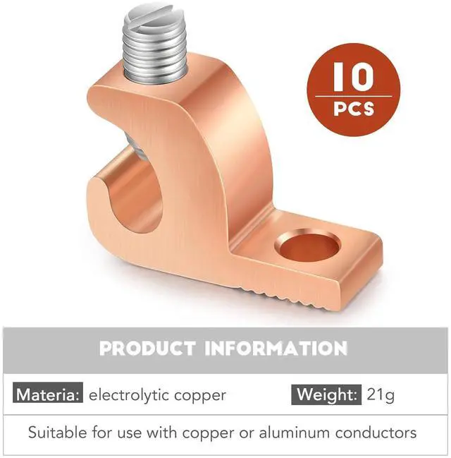 Easy to Use: simply loosen the set screw, "drop in" the wire, then tighten again to easily ground the conduit to all surfaces, making modification or maintenance very easy; Lay in connectors are a quality direct burial copper conductor connector that makes your grounding conductor more stable and secure without causing any breaks
