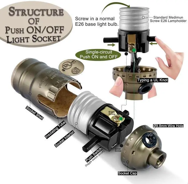 UL Listed Electrical Components -Both the electric cord and the light socket are UL listed. Safe material for electrical installation.