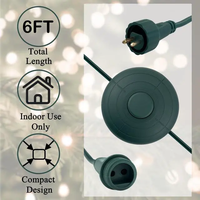 Durable 6-Foot Power Cord: Extra-long 6-foot cable gives you flexibility to place your lights and decorations exactly where you want them, even when outlets are located farther away.
