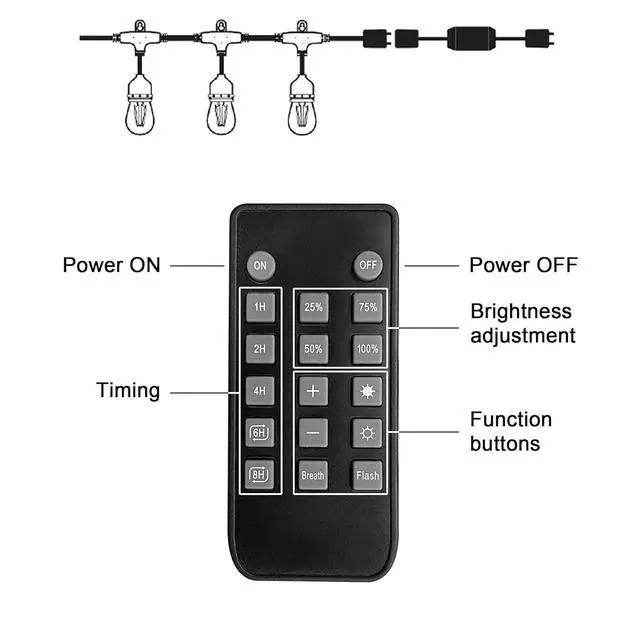 4 Brightness Mode: The outdoor dimmer for led string lights has 4 preset brightness : 25%, 50%, 75%, 100%. Select any one of the four modes as you wish, stepless dimming. And it is convenient for you to increase or decrease the brightness use the "+" and "-" buttons on the dimmer controller.