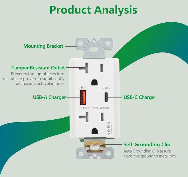 Easy to install: This 65Wusb socket is compatible with standard wall boxes and wall plates, can directly replace existing sockets, and supports 12 or 14AWG wires