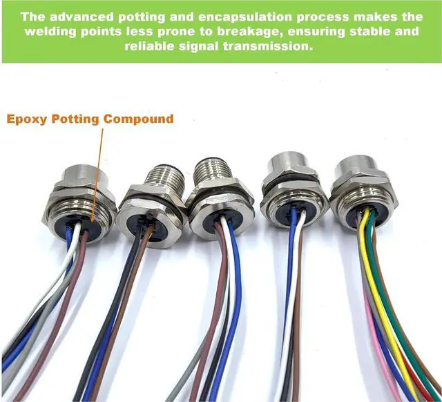 Featuring an advanced potting and encapsulation process for robust solder joints and premium brass gold-plated contacts, this M12 connector cable ensures reliable performance, excellent conductivity, and superior resistance to wear in harsh industrial environments.
