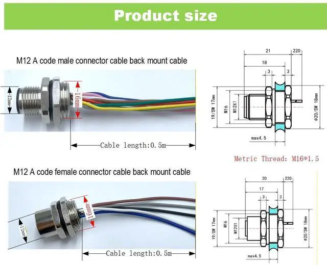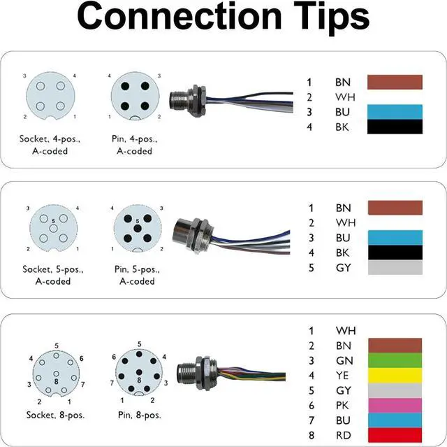 Wide Compatibility & Multiple Options Available in 4-pin, 5-pin, 8-pin, and 12-pin male/female variations, compatible with a wide range of industrial automation equipment, robotics, and sensor systems.
