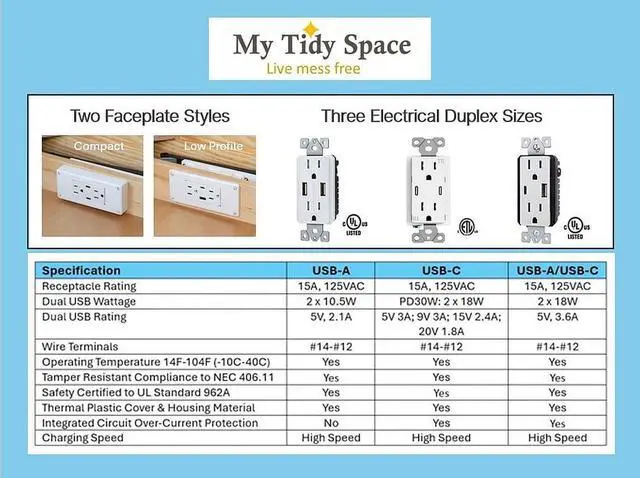 Safety: Tamper resistant outlets ETL certified to UL 962A and CSA 22.2 safety standards