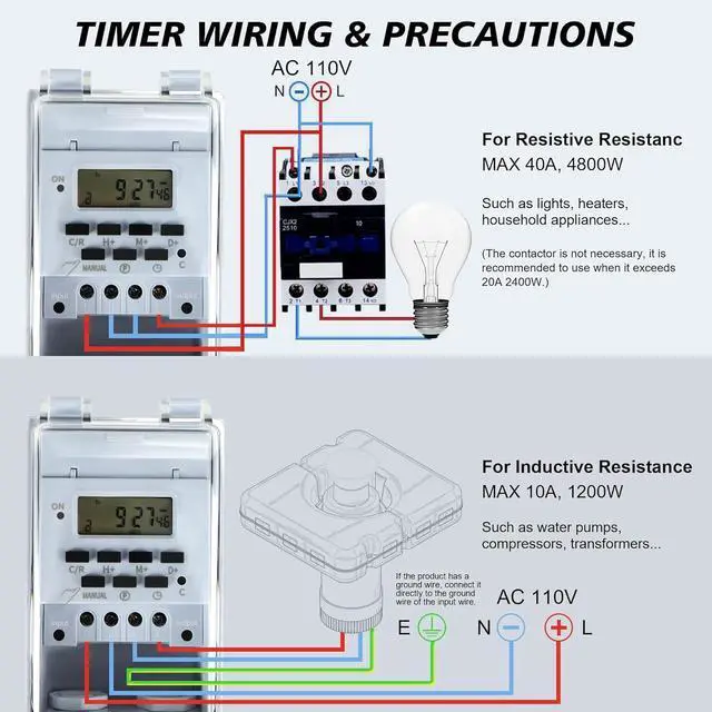 EASY TO PROGRAM: This programmable timer switch allows extremely convenient and flexible time setting for week, hour, and minute directly, super easy to understand and apply, fully meet your needs. Widely used in sorts of lamps, lighting equipment, production equipment, TV equipment and home holder powers and more