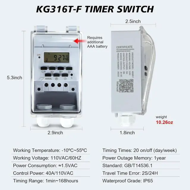 MULTIPLE USE: Goldlife KG316T-F timer switch can automatically connect and shut the power of the equipment according to the fixed control process and time. Ideal for all kinds of electric pumps, pond fountain aerator, fountain pump timers, sprinklers, christmas lights, patio and yard lights, compressors, humidifiers, aquariums, ventilators, home household appliances and more