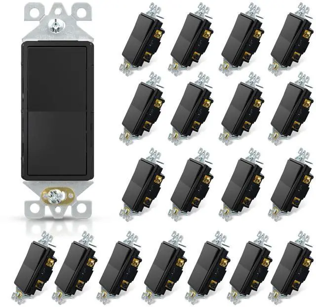ELEGRP Single Pole Decorator Light Switch, 15Amp, 120/277V, Decorative Paddle Rocker Switch Replacement, On/Off Wall Switch, Self-Grounding, Residential/Commercial Grade, UL/CUL (20 Pack Glossy Black)
