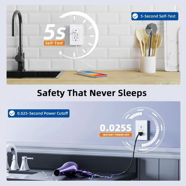 Self-Test Every 5 Seconds with Patented Dual ProtectionOur GFCI outlet performs a self-test every 5 seconds to ensure constant protection against electrical shock. The patented dual-coil technology and Reset-Disable System ensure the outlet cannot be reset when it reaches the end of its life.
