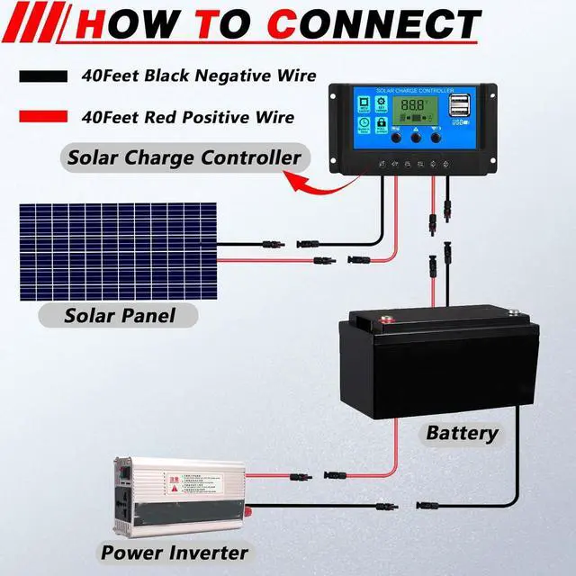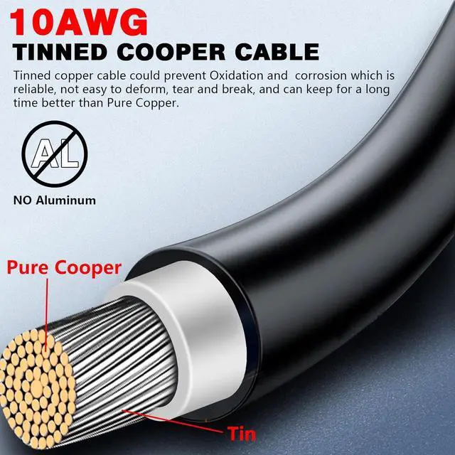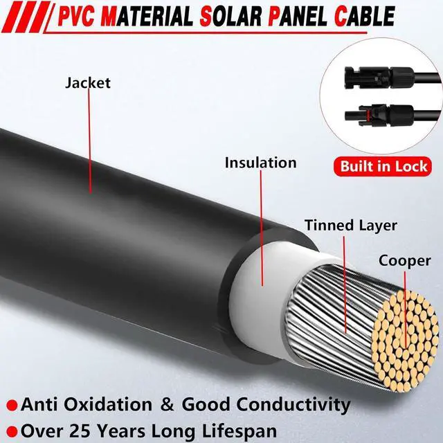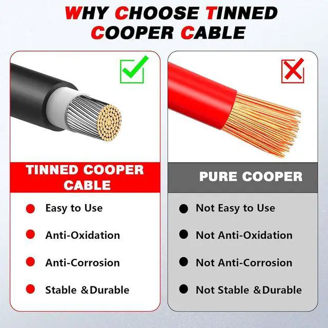 10AWG One Pair Solar Panel Cable: 40 Feet Black + 40 Feet Red solar panel cable solar extension cableof tinned red copper, which has better conductivity than pure copper.