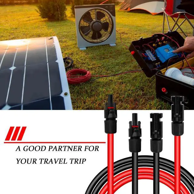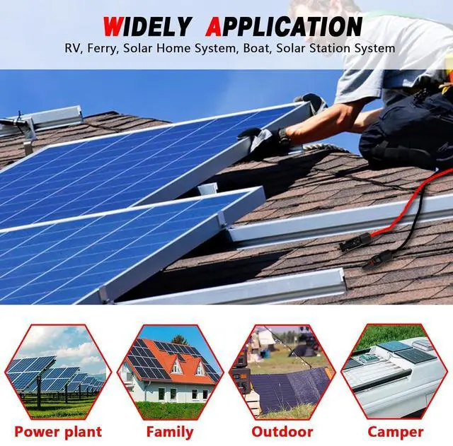 Weatherproof Solar Panel Cable Kit: The IP67 waterproof solar cable wires are designed to worked well at outdoors of extreme weather (-40°C90°C), 6 mm² solar panel connecotr cable rated at DC 1.5KV for a long time (about 20-30 Years).