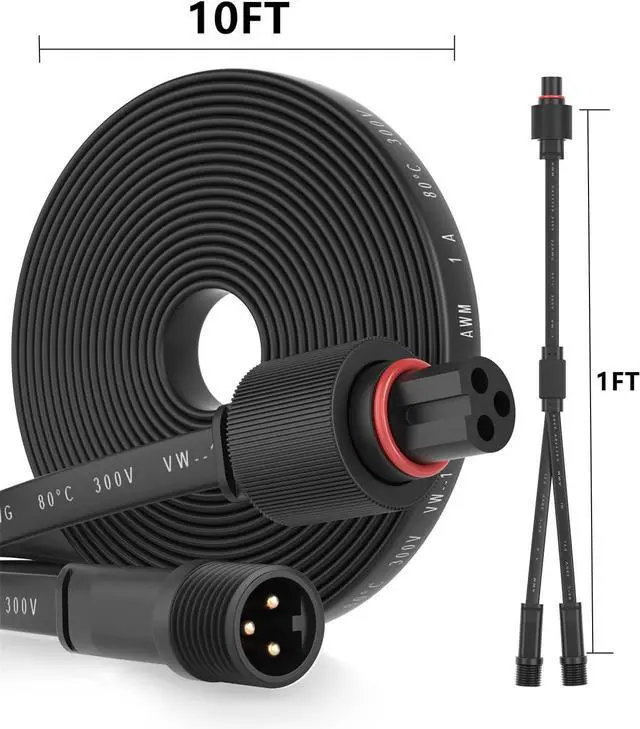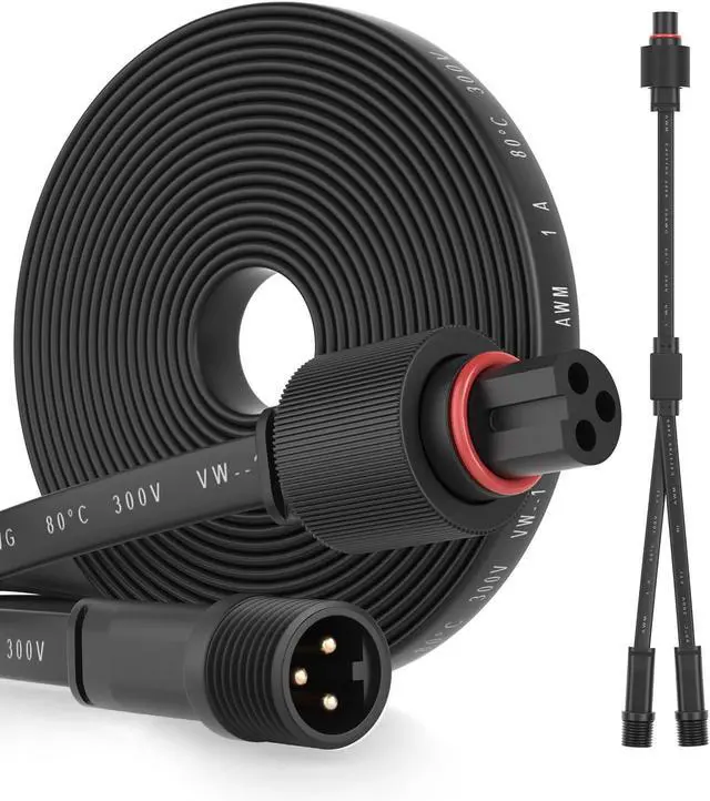 Specification:3 pin Waterproof Extension Cable,with Y-Shaped Extension Cable.Fit for go-ve Permanent Outdoor Lights Pro. It is only compatible with models H706A/H706B/H706C,H705A/H705B/H705C, H705D/H705E/H705F, H703A/H703B, H805A/H805B/H805C. Not compatible with other govee models. Before making a purchase, please make sure that the connection port of your outdoor light matches the plug shown in the product image.