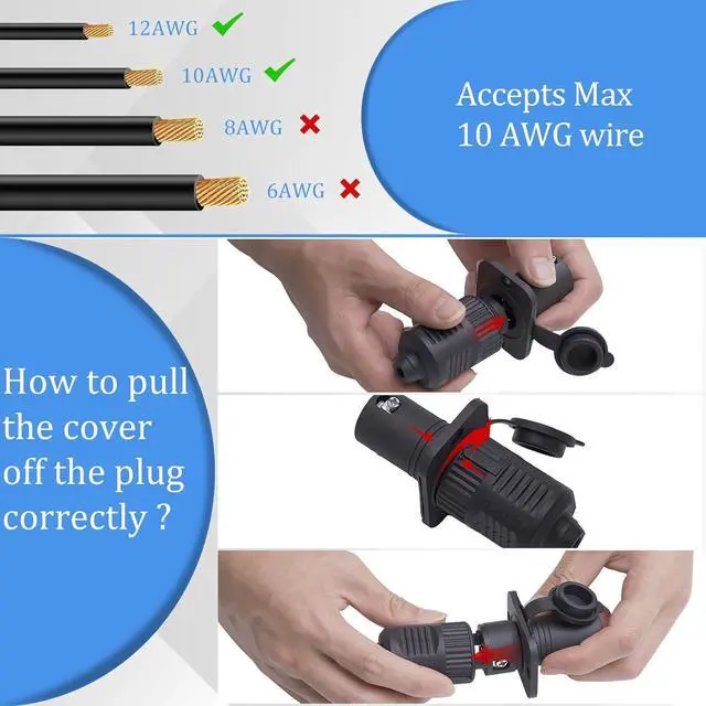 Max 10 AWG Wire Gauge: This plug set is rated at 40A and compatible with 10 AWG/12AWG/14AWG/16AWG wires on 12V, 24V, or 36V systems.