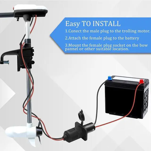 Saftey & Convenience Design: This trolling motor plug set allows for easy plug-in and removal, eliminating the need for hard-wiring to your boat. Its ergonomically designed handle ensures comfort during frequent connections and disconnections of the trolling motor and battery. The watertight sealing cap and gasket enhance its waterproof capabilities.