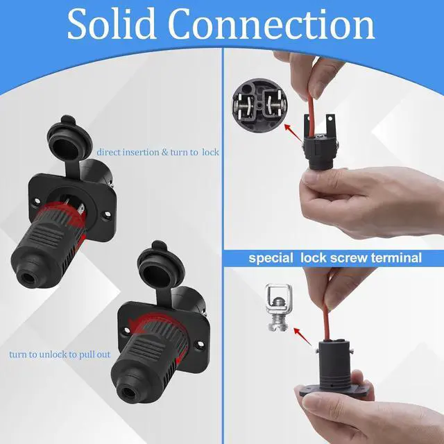 Solid Connection: With its turn-to-lock design and special lock screw terminals, the marine DC power connector ensures a secure electrical connection even under extreme hull vibrations, providing continuously reliable power for your boating adventures.
