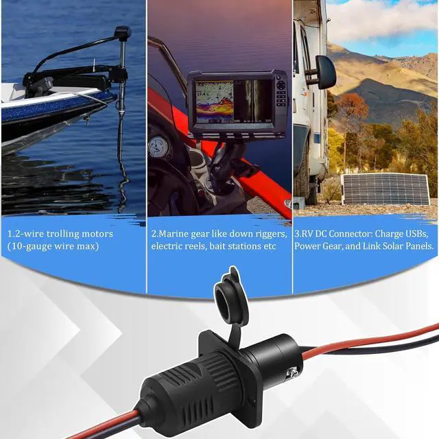For Multiple Applications: Engineered for 2-wire systems at 12V, 24V, or 36V, it's perfect for powering 2-wire trolling motors and a range of marine accessories, including down riggers, electric reels, portable bait stations, fish finders, and removable gig lights etc. For RV owners, it provides convenient 12V DC power for USB chargers, and external solar panels on fiberglass trailers.