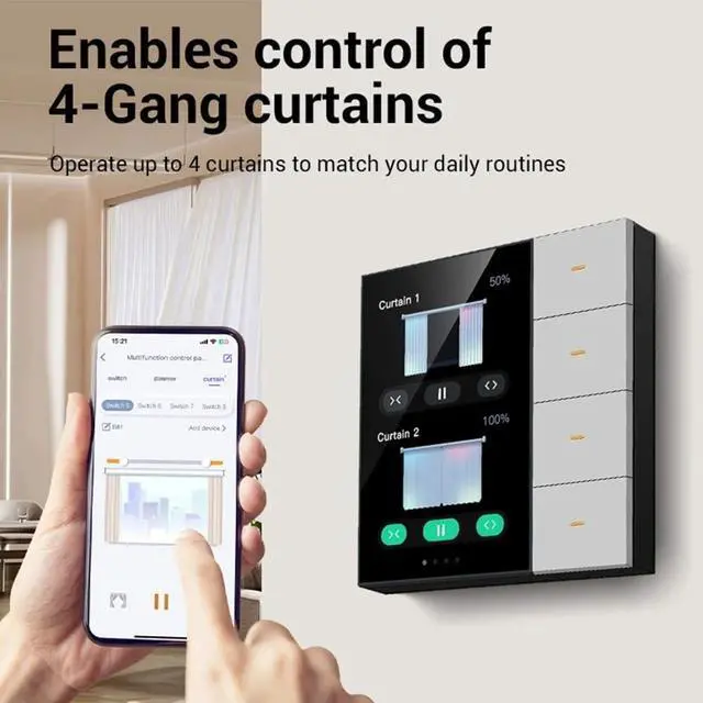 4-way curtain control:Operate up to 4 curtains to match your daily routines
