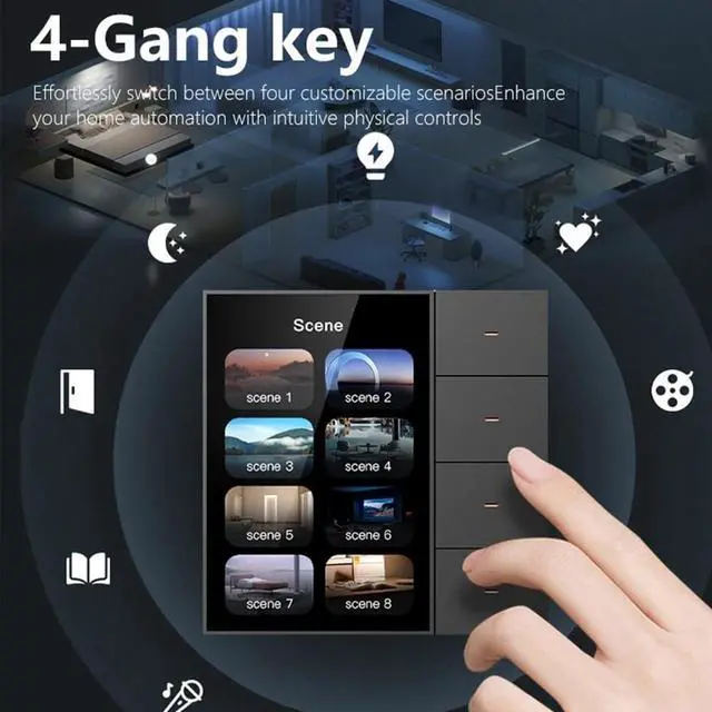 4-way switch:Effortlessly switch between four customizable scenariosEnhance your home automation with intuitive physical controls