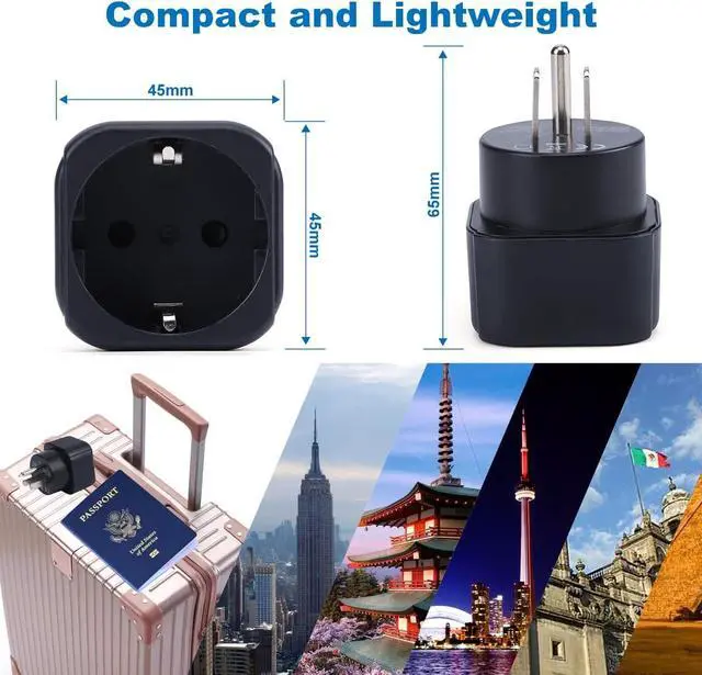 Perfect for visitors from Europe (Germany, France, Spain, Italy, Belgium, Finland, Greece, Netherlands, Norway, Poland, Portugal, Russia, Sweden) travelling in US/Canada/Mexico, EU Type C/E/F plug fit to US/Canada Socket