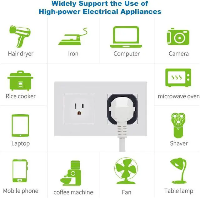 Max Power to 1600 watts in US/CA (Rated power 15A, 110V), Compatible with smartphones, cameras, laptops, shaver, lights, hair dryer, straightener, curlers, toothbrush, curling iron and more, Ideal for electronics from abroad or hosting foreign friends at home.