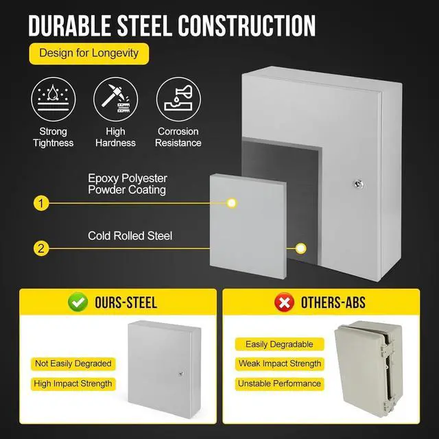 Heavy Duty Waterproof DesignMade of premium reinforced plastic with IP65 waterproof rating, this electrical box keeps power connections safe from rain, snow, and dust year-round.