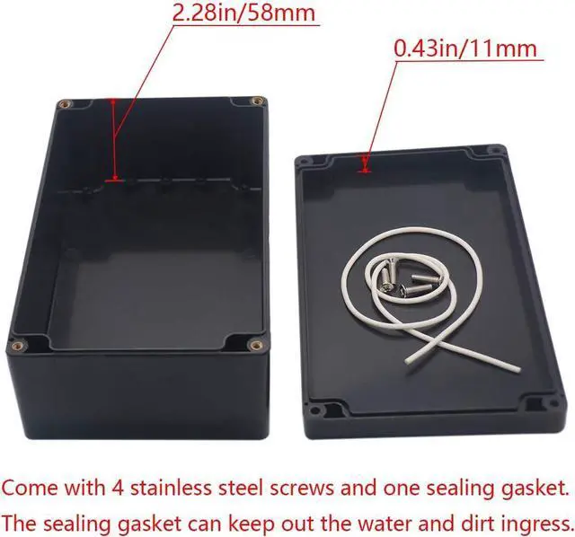 Size- Outer size of the project box: 7.87"x 4.72"x2.95"(200 x 120 x75 mm); Inner size of the project box:7.59" x4.4" x 2.67" (192 x112 x68mm)
