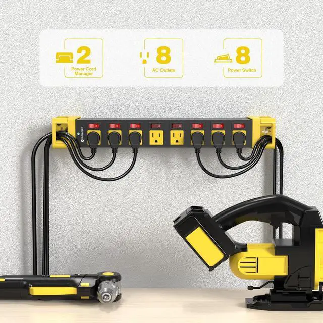 8 individual switches on this heavy duty power strip so that you can turn on and off devices independently, no more hassle of plugging and unplugging devices. Save effort and money. It suits nicely for a power tool battery charging station on your workbench.