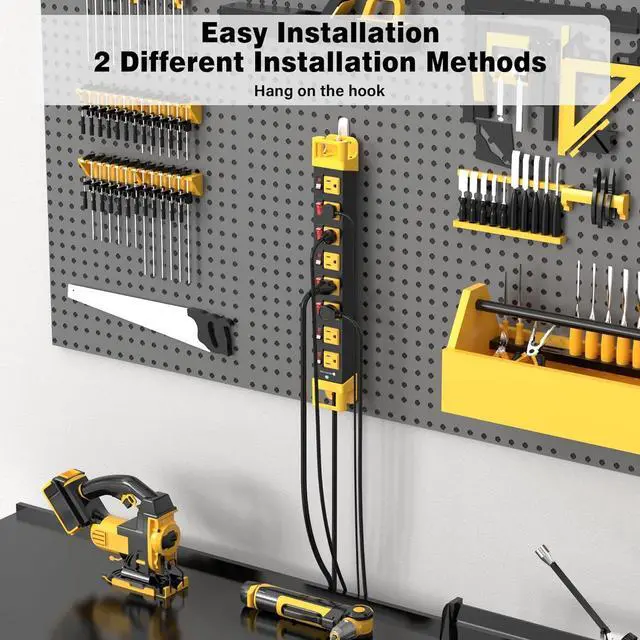 This wall mount power strip features 2 hanging slots at the back, can be mounted to any desired locations or hung on the hook. Being mountable gives convenient access to power sources when you plug and unplug devices with just one hand.