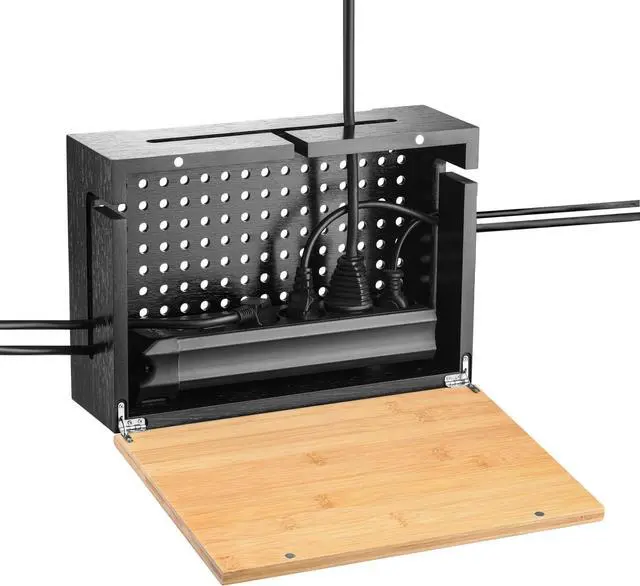 PRACTICAL DESIGN - Featuring an appropriate size and shape, our cord management box accommodates almost all kinds of four-outlet power strips and stores cords, chargers, adapters, HDMI cables, etc. neatly and safely in one place! The cable insertion and removal are made easy with the help of three convenient slots on the sides and top!