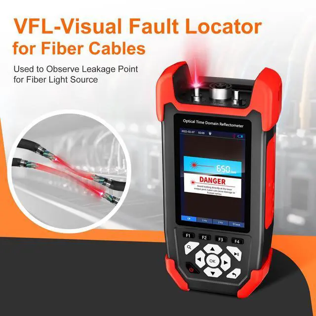 Fiber Optic Tester: The 8-in-1 fiber optic tester is built in OTDR, OPM, Visual Fault Locator, Optical Light Source, Event Map (IOLM), RJ45 Sequence Test, Loss Tester and Smart Systerm Set. It is can quickly and accurately detect the location and type of fiber optic cable fault points.