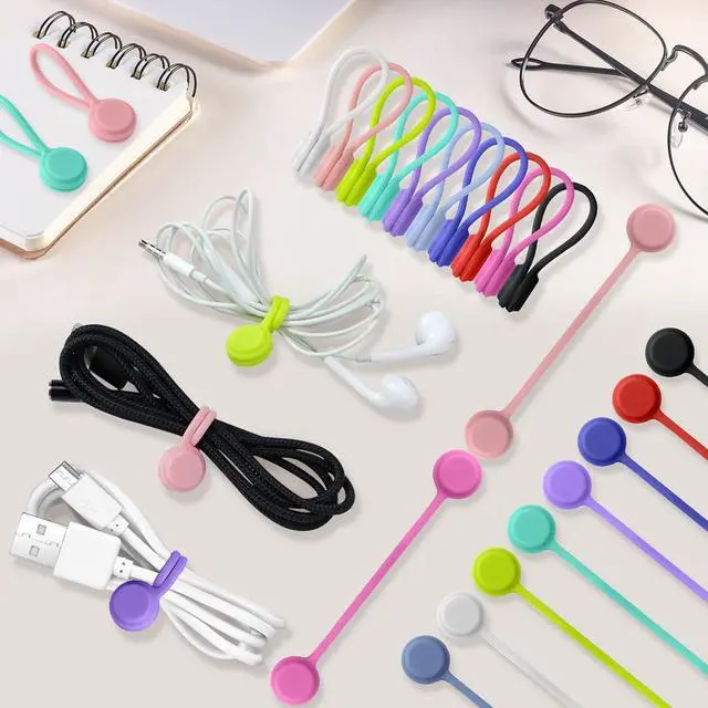 Value Set PackMagnetic twist ties includes 48 silicone headphone and cable organizers compatible with all mobile devices and accessories. Keep your cables tangle-free and easy to find with brightly colored tabs. Easy to reuse! Simply loosen the cable clips and go.