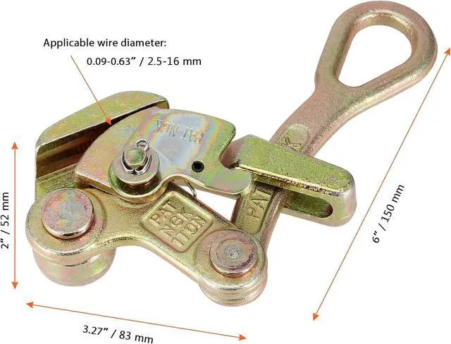 WIDE USES - The cable pulling grip is easy to load and compact, in small size, easy to carry. Suitable for cables or wire rope diameters ranging from 5/32" to 7/8". With a maximum load of 2,204 pounds / 1 ton, great for tightening ropes, installing zip lines, stretching barbwire, etc.