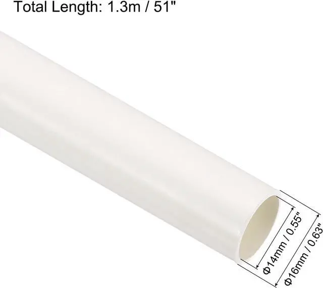 Total Length: 1.3m/51 inch; Outer Diameter: 16mm/0.63 inch; Inner Diameter: 14mm/0.55 inch;Color:White;In the package of: 4 x PVC Conduit Pipe
