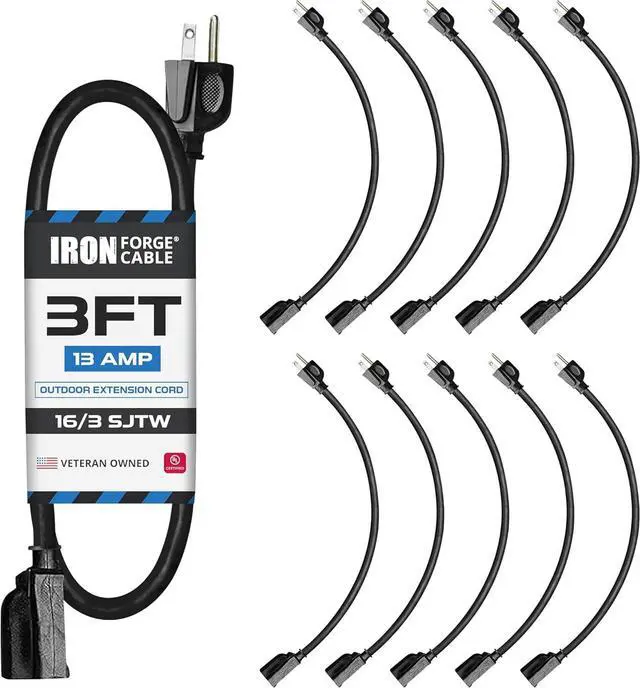 ALL-PURPOSE CORD: For Indoor & Outdoor use, this vinyl-covered 3 foot black extension cord is flexible allowing for easy storage. Great for small appliances, office, computer, monitor, lamps, leaf blower, indoor & outdoor lightss, landscaping, gardening, and more!