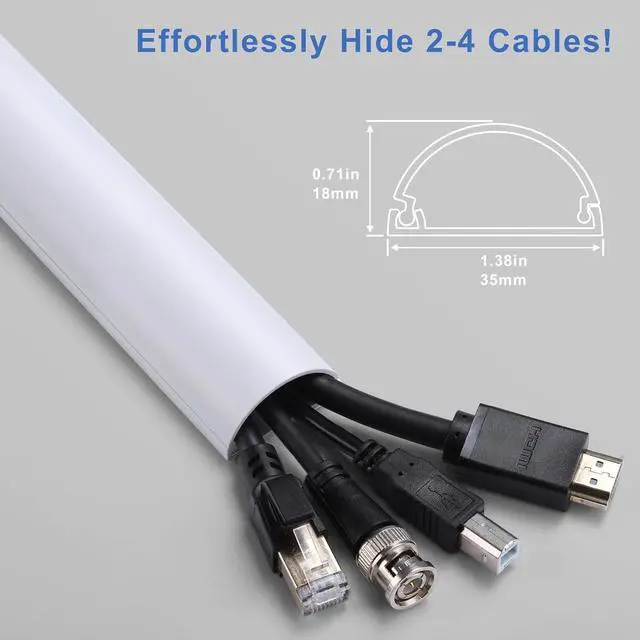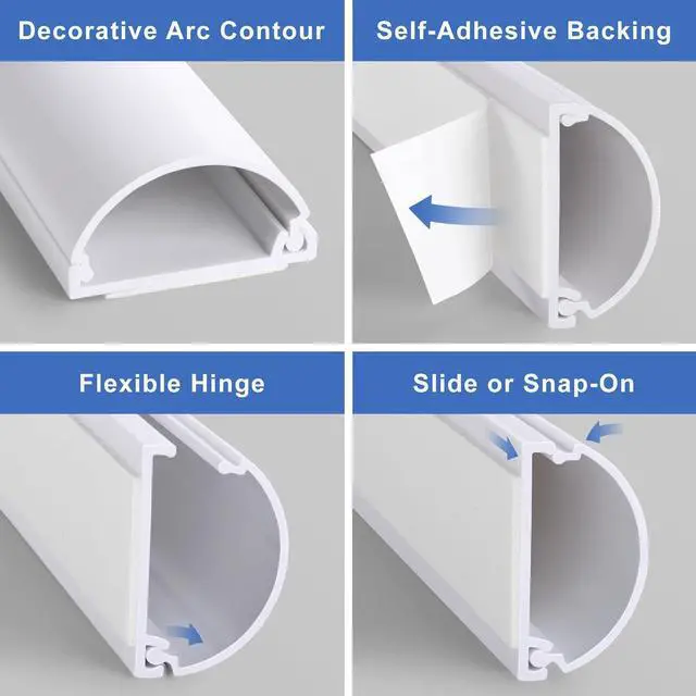 Decorative Curved Profile Wall Cord Concealer: This Cable Hider is perfect to hide wires along wall, enhance the aesthetics and safety of your living room with a small and simple change; 39in length is sufficient for common wall-mounted TV cable management, however, you can also splice the cable channels together seamlessly for a full length of 78in