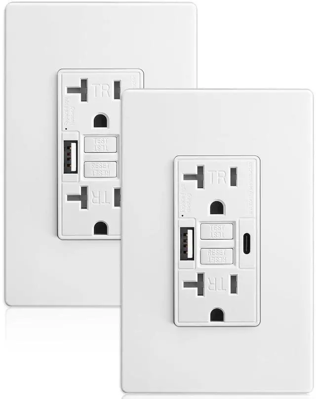 Our 20 Amp GFCI outlet features both USB-A and USB-C ports, offering convenient and safe charging for your smartphones, tablets, and other devices.