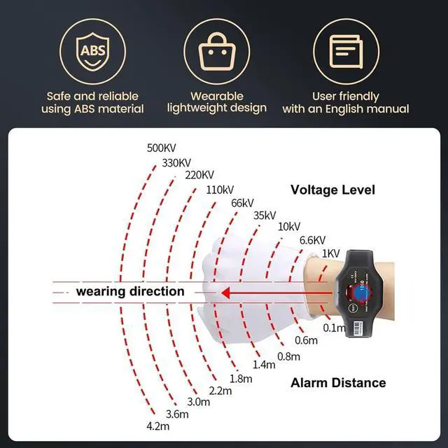 3.Comprehensive: Detects the electric field in the air in all directions, trigger automatically alarm function, sound and light mode, ensuring the safety of near-electricity operator.