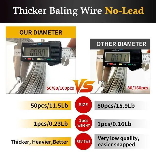 High quality raw materials: Our baling wire uses low carbon steel wire with strength, toughness, and ductility as the inner core. You will receive 50 pieces of galvanized baling wires with no-lead, and each wire about 4.26 meters/ 14 feet in length and 2 mm in diameter.