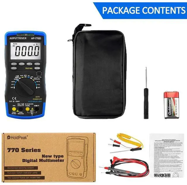 High Precision MultimeterAP-770D Multimeter with 40,000 count display can accurately measure AC/DC voltage, AC/DC current, resistance, capacitance, temperature, frequency, duty cycle, diode test, hFE test, true RMS, relative value