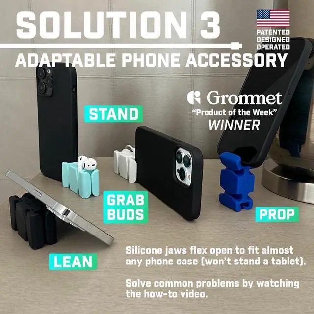 PHONE ACCESSORY: Stand your phone, prop it up, or just lean or set your phone on CordBrick for unexpected benefits at any charging area - or on the go. Even fits some earbuds, pens and other small items.