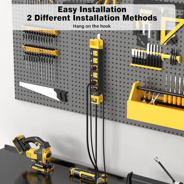 This wall mount power strip features 2 hanging slots at the back, can be mounted to any desired locations or hung on the hook. Being mountable gives convenient access to power sources when you plug and unplug devices with just one hand.