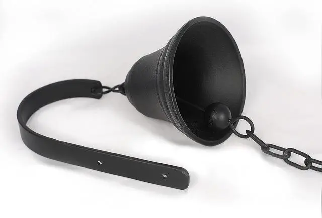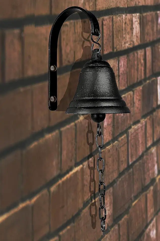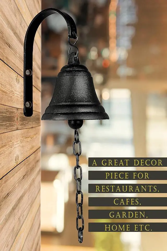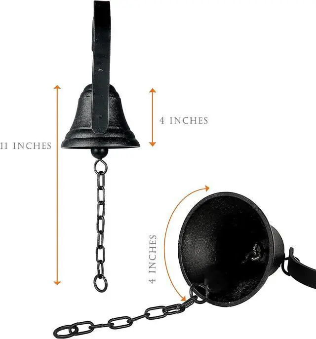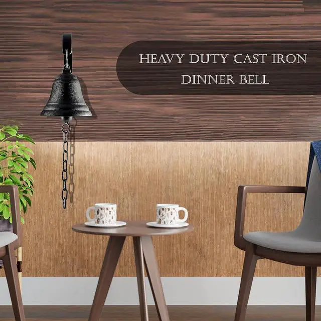 Dinner Bell: Cast Iron Door/Dinner Bell, Vintage Wall Decor Design with Iron Chain Handle, Rustic Finish, Wall Decor Sculpture,Fully Functional Classic Bell with Great Sound, Deconoor Cast Iron Vintage Rustic Dinner Bell