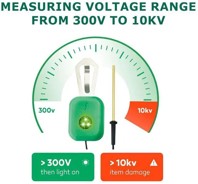 ERGONOMIC DESIGN: green to blend in with the environment. Measures voltage range from 300V to 10kV (over 10kV may be damaged)