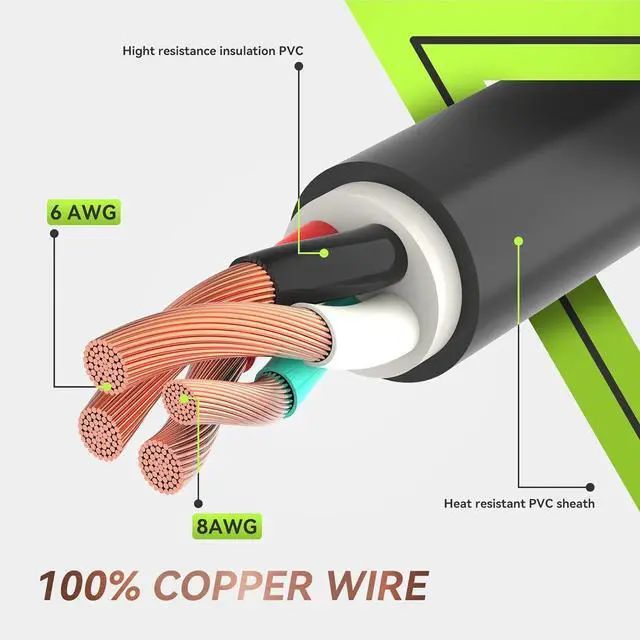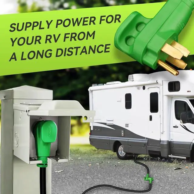 Power up your 5th wheel camper, RV and other vehicle from a distance to power supply by this massive extension cord. 50 amp, 15 feet, 6/3 AWG +8/1 AWG, ETL listed, rated for 6250 Watt (125V) and 12500 Watt (250V).